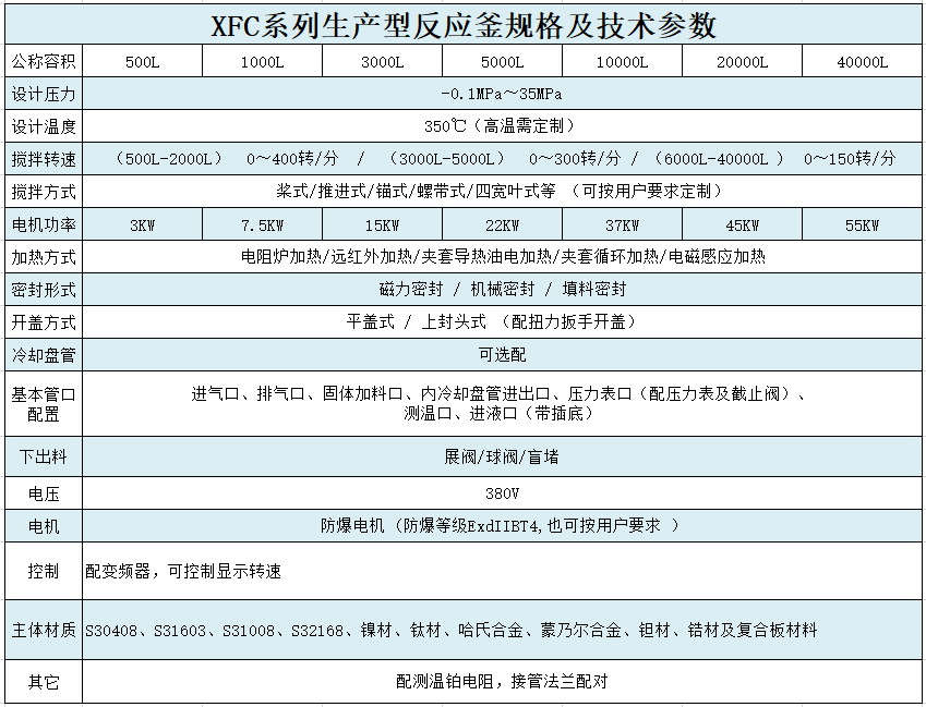 高壓反應釜技術參數如下: